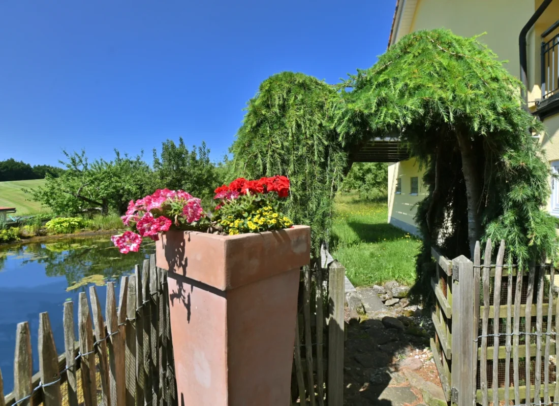 - 14 m² Teichterrasse direkt am Wasser gelegen